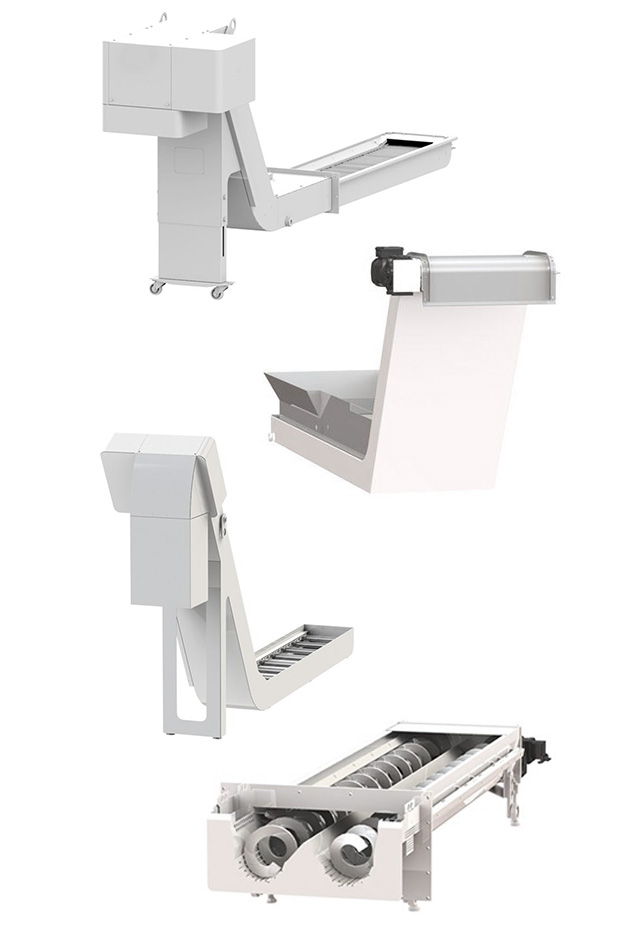 Vi kan erbjuda separata transportörer eller kompletta systemlösningar i kombination med andra produkter som t.ex. brikettpress eller spåncentrifug.