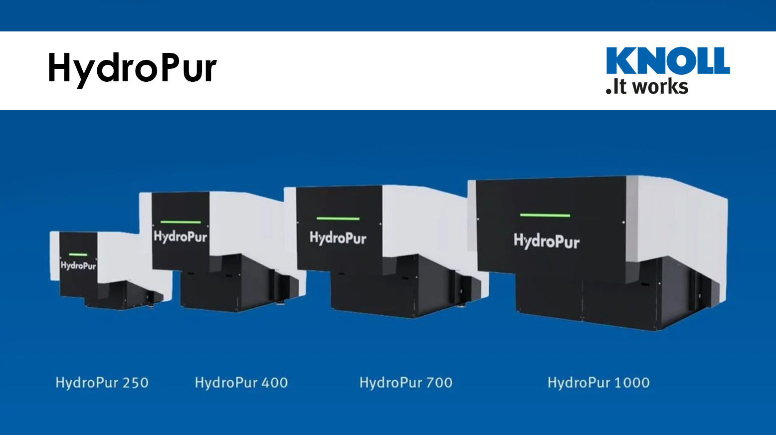 KNOLL HydroPur är ett hydrostatiskt filter som, när det integreras i ett system med tank, pumpar etc., förser metallbearbetande verktygsmaskiner med renad skärvätska. Filtret har filterpapper eller ett ändlöst band som i kombination med det hydrostatiska trycket mycket effektivt separerar vätska och spån – med många fördelar jämfört med enklare filter. Tack vare sin höga filtreringsgrad är hydrostatiska filter särskilt lämpade för slipprocesser. De möjliggör även problemfri hantering av andra typer av spån, inklusive lättmetaller.