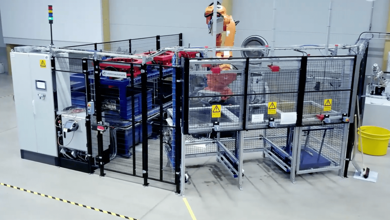 När behållaren vid bearbetningsmaskinen är full med spånor körs den till anläggningen. Vagnen med behållaren dockas i anläggningen och operatören trycker på en knapp – sedan sköter anläggningen resten.