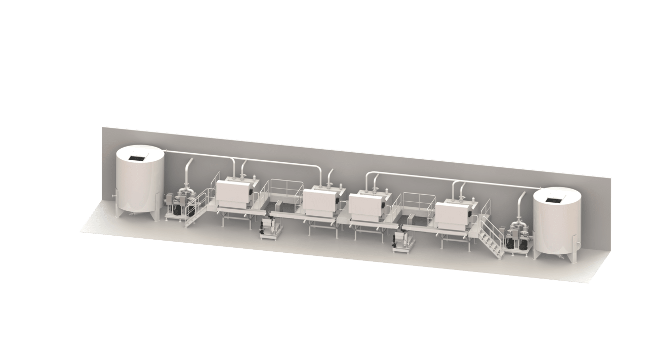 Vardera anläggning försöjer en produktionsline med 3-4 maskiner.